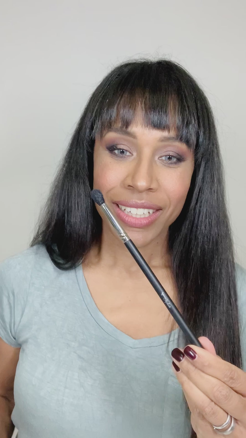 Zum schattieren oder verblenden von Lidschatten. Mit diesem Pinsel lassen sich zu scharfe Ränder weich verblenden oder verschiedene Farben miteinander vermischen. Die Haare (Ziegenhaar) dieses Pinsels laufen in einem kegelförmigen Kopf zusammen, dadurch lässt sich der Lidschatten präzise in der Banane verblenden. Super also für Einblendungen – Bananentechnik.